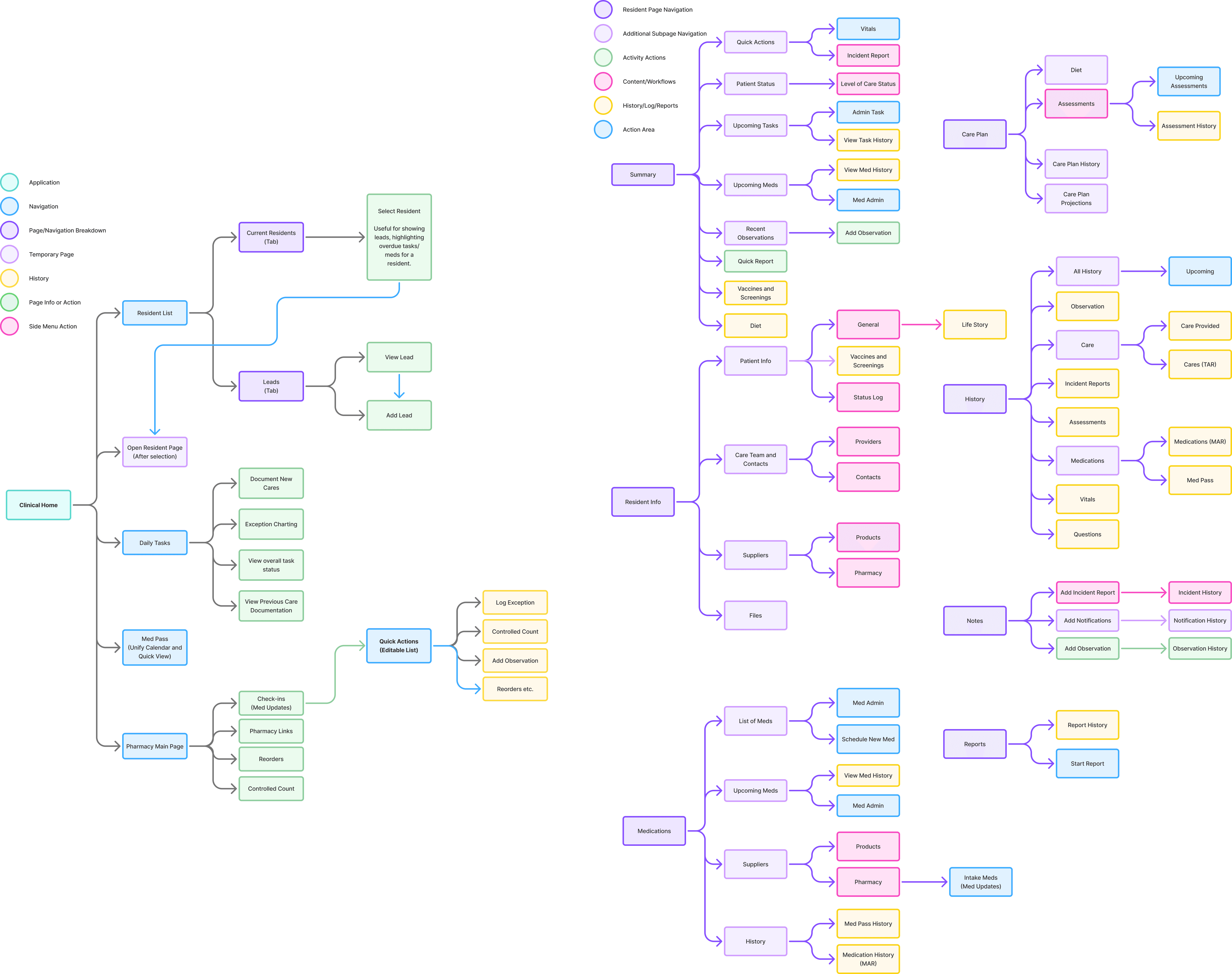 Navigation was one of the largest sources of friction in the clinical product. Over time, features had been added wherever space allowed, resulting in a navigation system that reflected the history of the product rather than the mental model of the people using it. Users frequently had to jump between unrelated sections of the platform to complete a single task, breaking context and slowing down documentation.